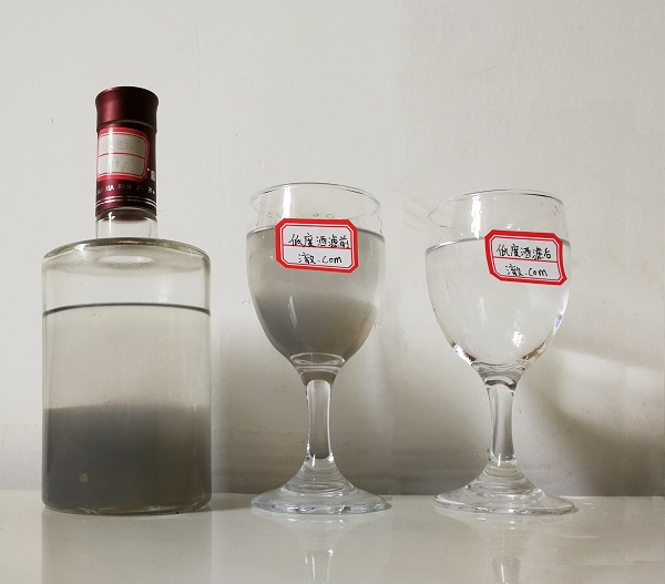過濾后在保持酒體香酯成分不損傷的情況下,去除酒體中的苦味,異雜味,爆辣味,怪味及酒中異香,催熟后酒體無苦味,異雜味,爆辣味,酒體香氣純正,口感綿柔,協(xié)調,爽凈,醇厚,可達到三年以上自然老熟陳化口感,低度酒抗零下十五度低溫不渾濁。